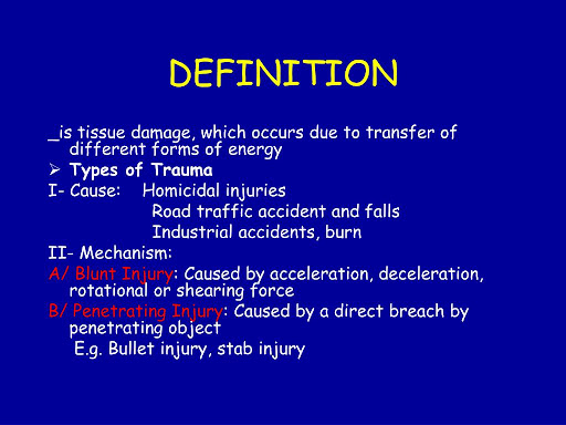 Trauma Is Usually Categorised As Blunt Or Penetrating.
